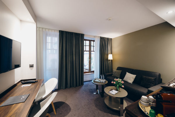D’une surface de 40 m², notre Suite se compose d’une chambre, d’un salon séparé et d’un bureau, offrant tout l’espace nécessaire pour se sentir à l’aise. WC séparé, dressing et machine Nespresso complètent les prestations de cette suite pensée pour conjuguer confort, calme et liberté.